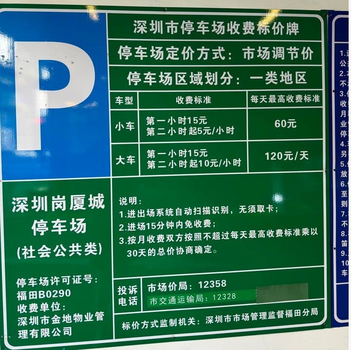 在深圳的一类区域(如福田 CBD ),停车场收费大多为第一小时 15 元,此后每小时 5 元。而在广州同类区域,往往起步就是每小时 16 元甚至更高,且阶梯涨价更猛烈。