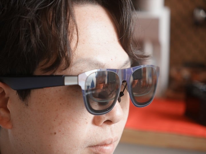 这个功能的背后有多重场景考虑:比方说你脖子酸了,后仰靠在椅背上,可以把画面重新定位到仰角更高的位置,来放松一下脖子;再比如,当你临时需要在多个屏幕上进行多任务操作,可以将眼镜当做副屏,把画面重新定位到桌面主显示屏的旁边(当你转头看回主屏幕的时候,镜片还会自动变色,让你能够清晰看到主屏幕上的内容)——无论场景是什么,这个功能都很方便。