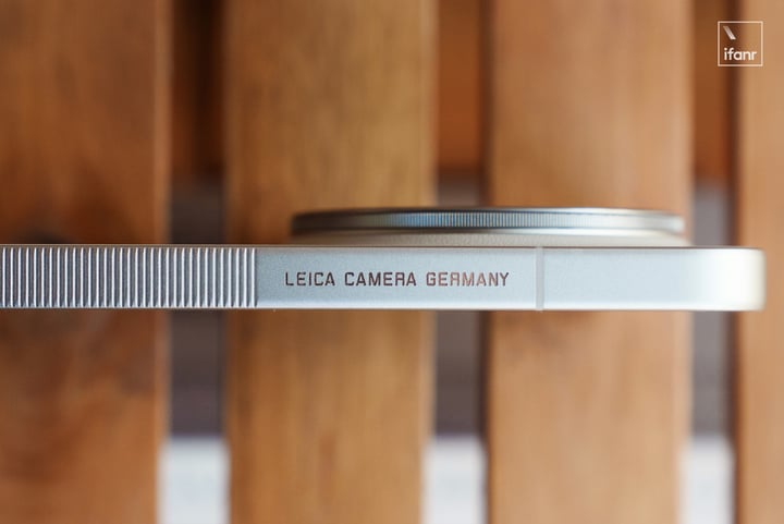 标准版的平滑边框不见了,取而代之的是一圈细密的金属滚花,这种设计类似于镜头光圈或对焦环的段落花纹,如果你仔细看,还能发现滚花中蚀刻着一行「LEICA CAMERA GERMANY」。