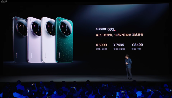小米 17 Ultra 拥有 12+512GB、16+512GB 和 16+1TB 三种 SKU,去掉了前代的 256GB 型号,起售价为 6999 元: