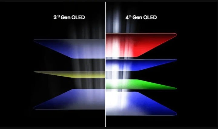 如果你有关注 2025 年的 LG G5 电视,那你想必不会对这块 OLED 面板太陌生。这块面板的发光层采用红、蓝、绿、蓝四层 OLED 面板堆叠而成,优势在于超高的亮度和色彩表现,以及更长的寿命,堪称当代最强的 OLED 屏幕。