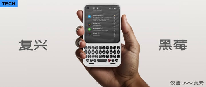 讲完了键盘 + 背夹电池,接下来才是真正的重头戏,一个在今天的手机市场上既前卫又复古的新产品:Clicks Communicator。