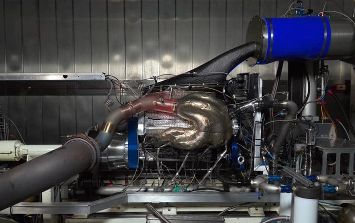 它的红线转速达到了 15000 rpm。在目前的量产车市场,这已经是极限了。要达到这个转速,引擎的内部组件必须采用极轻且高强度的特种合金。这台 V10 本身就能输出 1000 马力,另外还有一套电机,整车的综合功率锁定在 1200 马力。