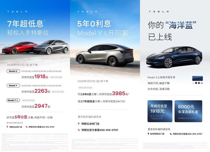 新的金融方案覆盖了 Model 3、Model Y 以及 Model Y L 三款主力车型: