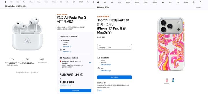 昨天,苹果官网上架了 AirPods Pro 3 马年特别款和马年主题手机保护壳,前者充电盒采用激光镌刻独家马年 Emoji,售价 1899 元;后者以骏马灵动感为灵感,采用粉色、红色、橙色与黄色渐变设计,适配 iPhone 17 全系和 Air,售价 449 元。