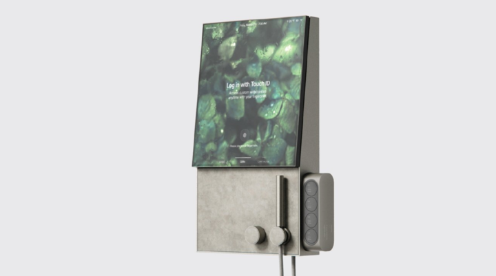 这套名为 Balance AI 焕肤淋浴系统的装置,实际上就是一面智能浴室镜,它直接安装在我们的淋浴间,通过近距离红外和光谱传感器,把我们淋浴过程,变成一套精准的美容程序。
