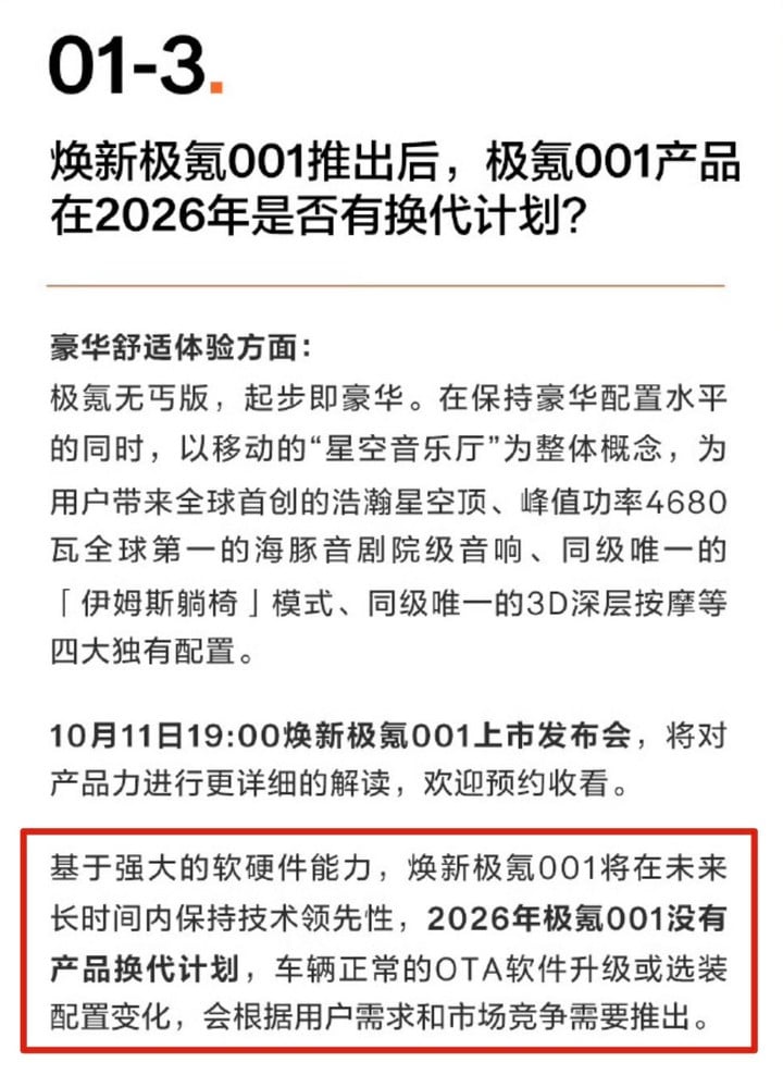 ▲ 极氪官方明确表示 26 年 001 没有改款计划