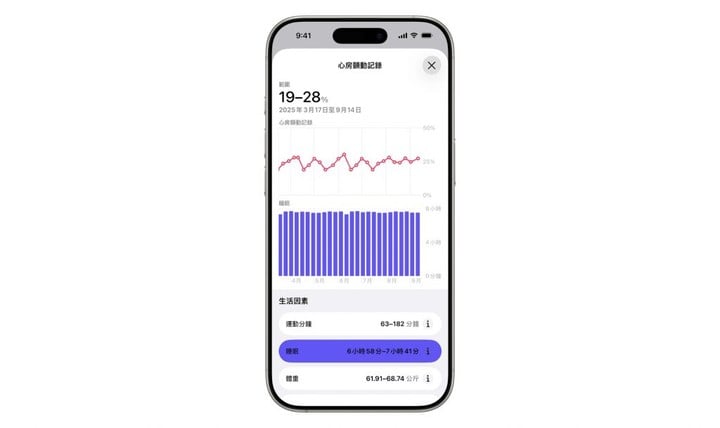 不管是苹果官网还是药监局的公示都标明,房颤历史主要针对 22 岁及以上已确诊房颤的患者,通过统计长时间的心脏数据,估算可能的房颤发作时长比例,不提供单独的房颤迹象提示——不是「报警器」,而是「心脏日记」。