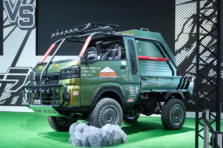 当所有人都以为丰田章男会开着那辆传闻中的 GR MR2 上台时,丰田搞来了一辆被改成越野风格的大发微型货车。