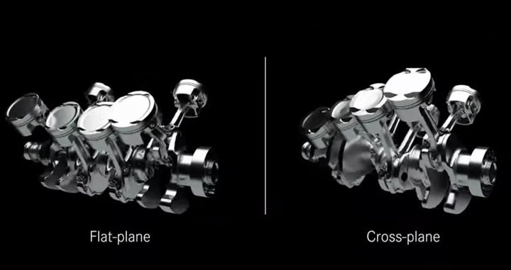 ▲ 左侧平面曲轴,右侧十字曲轴