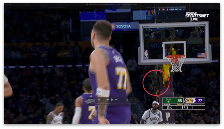 但问题来了:你正在场边看着字母哥(扬尼斯)或者詹姆斯或者东契奇在场上飞,突然就被拽出来了,因为那个毫无必要存在的导播决定让你换到篮下的底线机位: