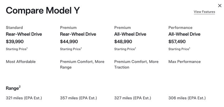 上周, 特斯拉中国官网曾短暂出现了标准版 Model Y 的页面,但目前已经被撤下。