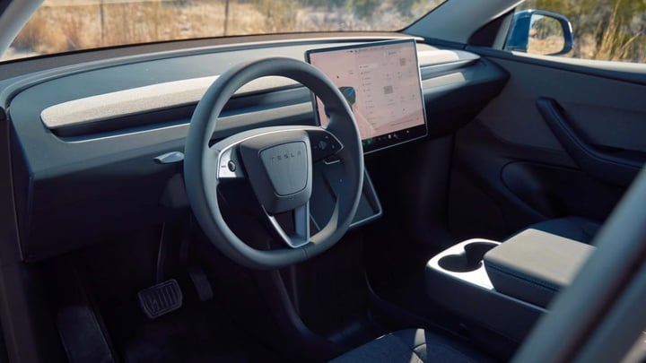 座椅材质回归织物,取消了前排座椅通风,后排座椅折叠、后视镜折叠及方向盘调节均退回手动模式。中控台设计采用了与 Cybertruck 类似的开放式储物槽风格。
