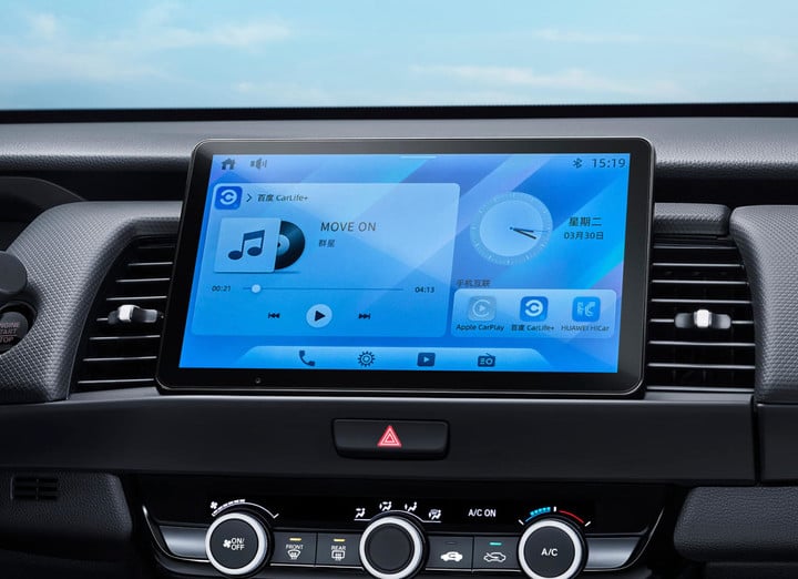 最显眼的变动是中控台换装了 10.1 英寸的悬浮式智能屏幕。这块屏幕解决了以往合资小车在车机互联方面的短板,支持华为 HiCar、苹果 CarPlay 以及百度 CarLife+ 三大平台的手机互联。