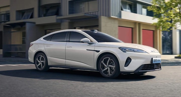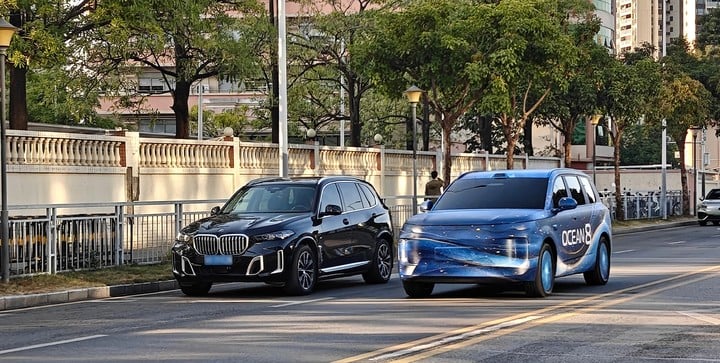 海豹 08 定位于 C 级中大型旗舰轿车,量产版高度还原了此前亮相的 Ocean-S 概念车的设计语言,车身长度预计超过 5 米,轴距突破 3 米。