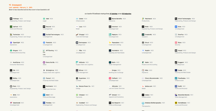 同时,根据第三方 YC Graveyard (YC 坟墓)的统计,一些不活跃,甚至已经停止的公司数量,在去年年初,就已经来到了 910 家。