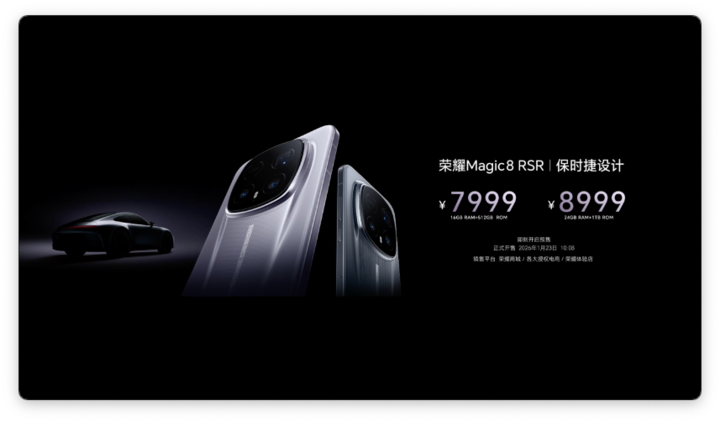 价格方面,荣耀Magic8 RSR 有 2 个版本: