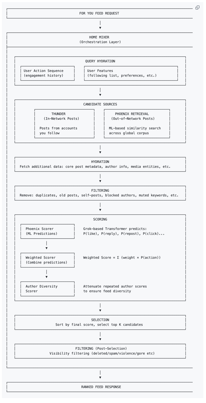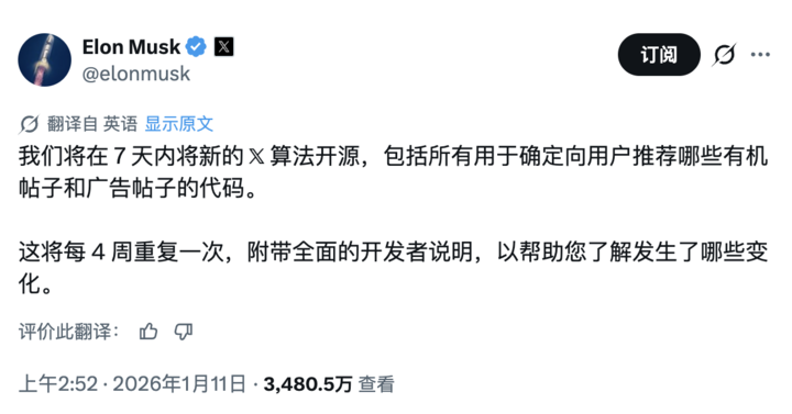 与此同时,𝕏 工程团队(@XEng)确认,新版算法已完成底层重构,全面采用了与 xAI 的 Grok 模型相同的 Transformer 架构,这也标志着 𝕏 成为首个将核心流量分发逻辑完全透明化的主流社交平台。