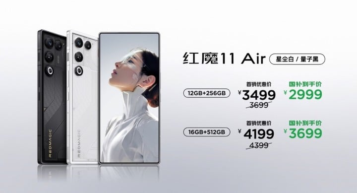 售价方面,红魔 11 Air 12GB + 256GB 版本定价 3699 元(首销优惠价 3499 元),16GB + 512GB 版本定价 4399 元(首销优惠价 4199 元)。
