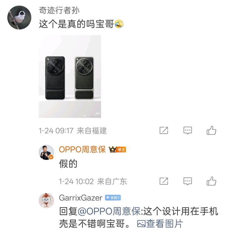 近日,OPPO Find 系列产品负责人周意保在回复网友时否认网传新机渲染图,明确表示「假的,可以等后面官宣」。他此前已在去年 12 月开启新机预热,透露内部代号为「灯塔」,寓意影像能力将成为行业标杆。