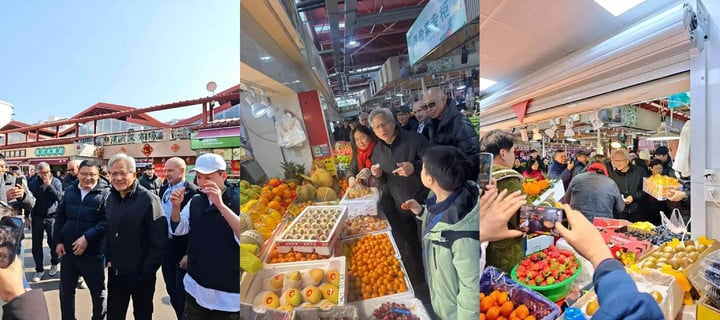 抵达上海后,黄仁勋现身陆家嘴街道乳山路锦德菜市场,引发大量网友围观。