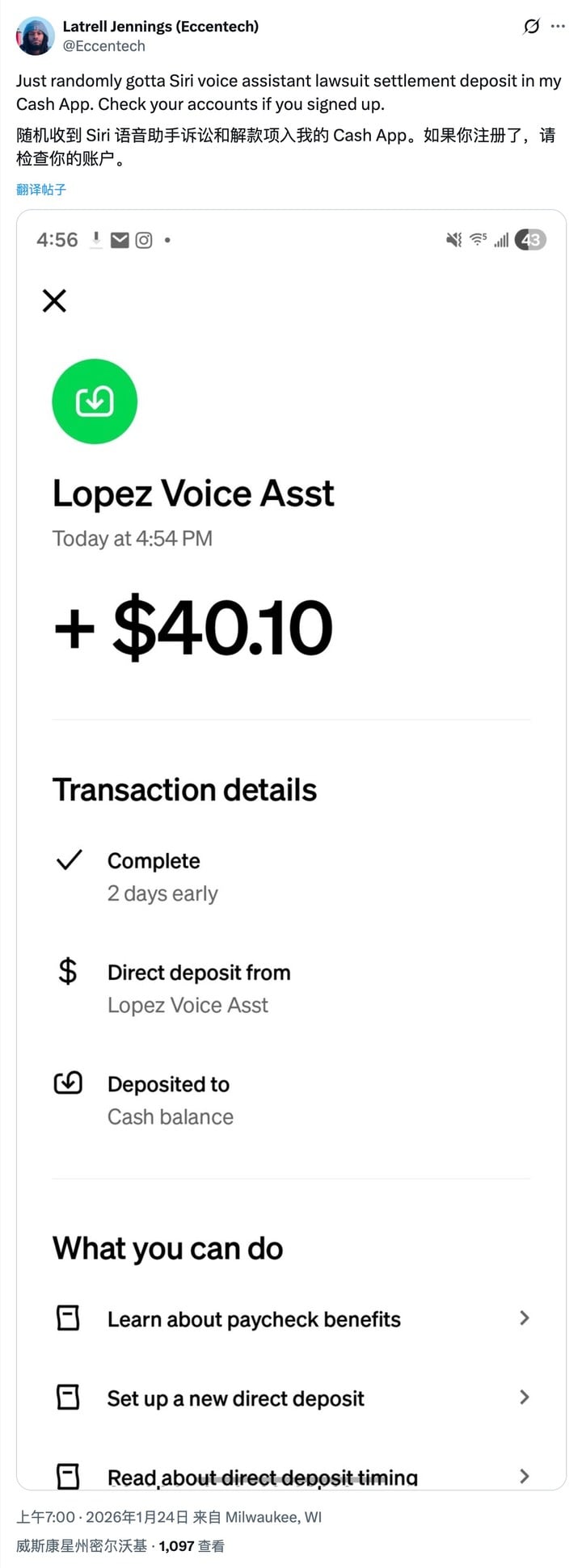 据 9to5Mac 报道,苹果已就 Siri「非预期录音」争议的集体诉讼向符合条件的用户发放 9500 万美元和解金。