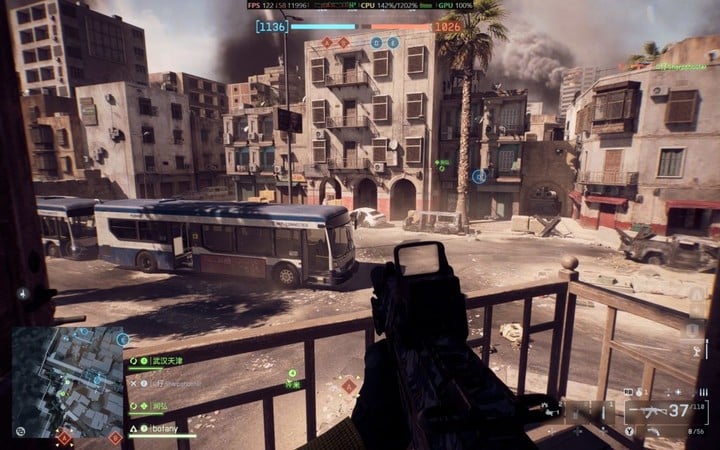 在 CES 上已经有过惊艳表现的《战地风云 6》,我们也测试了一番:在 1080P 分辨率、高画质和开启插帧的条件下,帧率总体在 120fps 左右。或许英特尔和《战地 6》有相关合作,这个游戏的 XeSS 插帧效果相当自然,画面也相当饱满。
