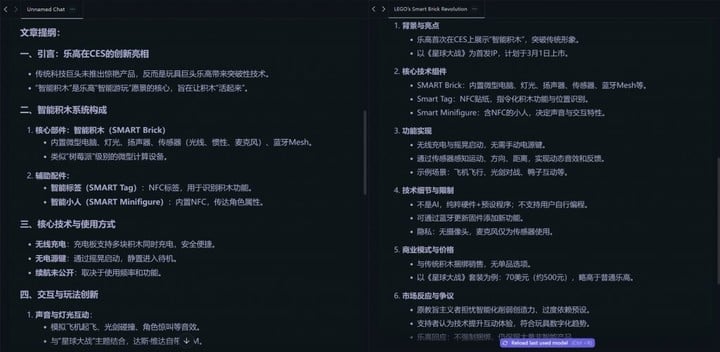 我将一篇 3 千字的稿子抛给它总结一下内容,几乎没有思考几秒,一个详尽的摘要就出现在我面前,速度和在线的 ChatGPT 一样快,内容质量相差不大。