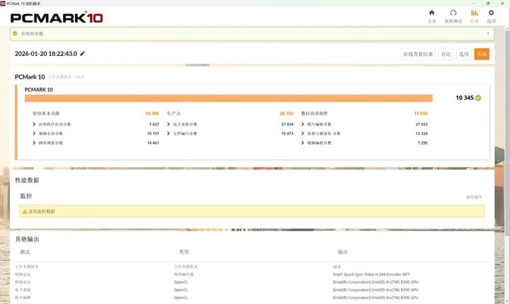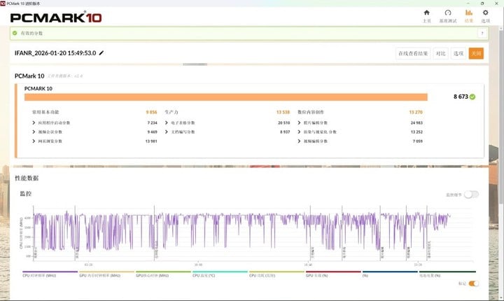 不过,连电和离电的差距在更综合的 PC Mark 10 跑分中进一步体现:10345 比 8673。