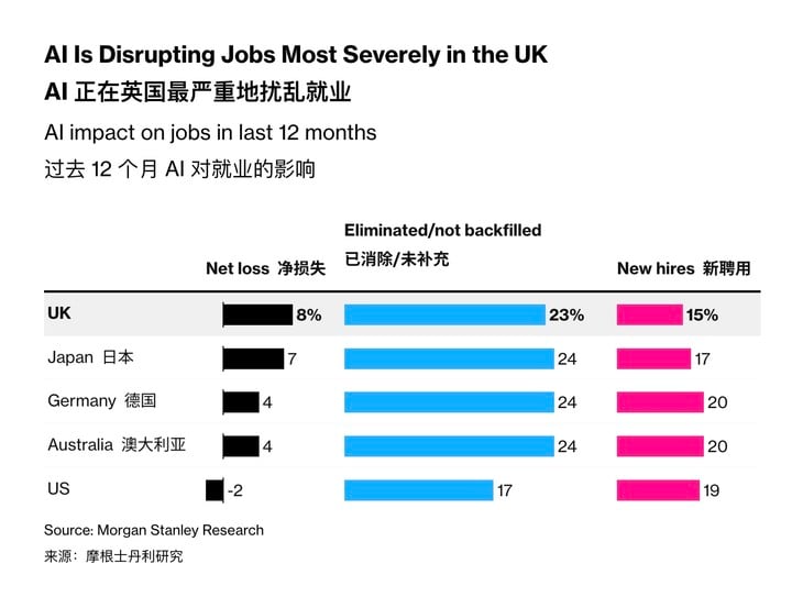 英国成受 AI 冲击最严重经济体:岗位净减 8%
