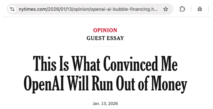 前不久「美国外交关系委员会」高级研究员、知名经济历史学家塞巴斯蒂安·马拉比 (Sebastian Mallaby) 在《纽约时报》刊登专栏文章,预测 OpenAI 可能在未来 18 个月内,也即 2027 年中左右烧光现金。