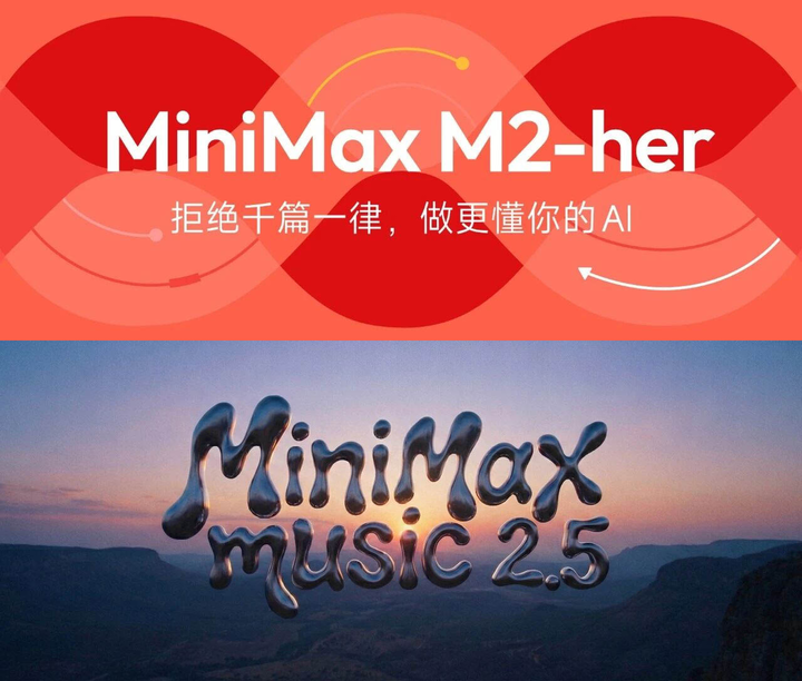 今天,MiniMax 稀宇科技同步推出两款面向不同创作与交互场景的大模型:主打长程陪伴体验的 MiniMax‑M2‑her,以及面向专业音乐创作的 MiniMax Music 2.5。