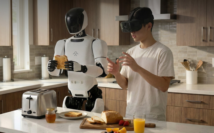 这一点,可能也是目前大多数机器人厂商面临的最大问题,就是需要远程操控,甚至是要 VR 操控。和我们之前分享过的一款能做家务的机器人 1X Neo 一样,没想到背后还得靠一个真人,戴着 VR 眼镜,来实时操控机器人的行动。