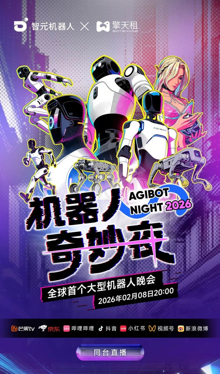 昨天,智元 AGIBOT 正式公布了全球首个大型机器人晚会《机器人奇妙夜》(AGIBOT NIGHT 2026)的完整节目单。