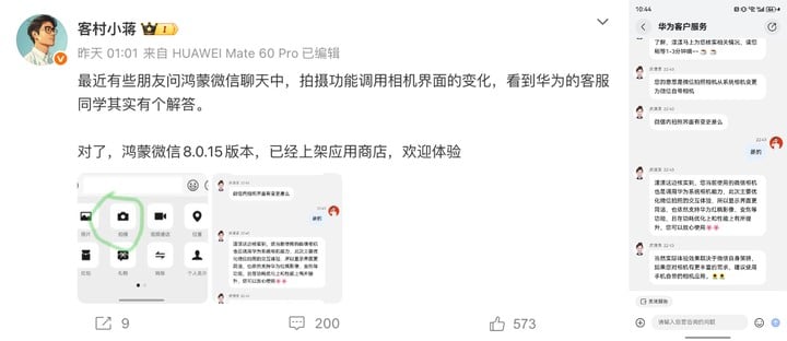 微信回应鸿蒙版相机界面更新:仍调用华为系统相机