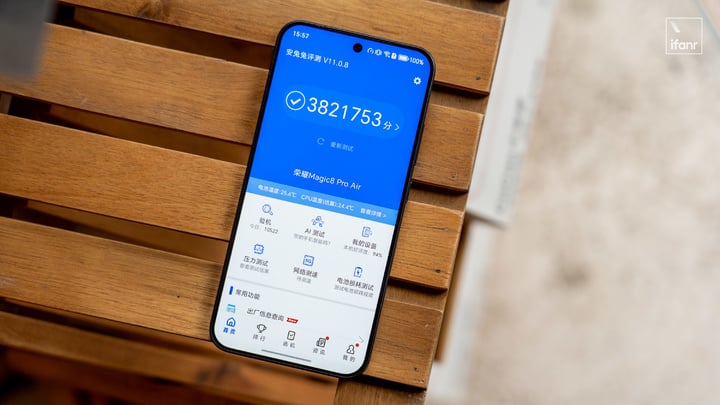 在常温室内环境下,安兔兔跑分为 3821753,放在旗舰定位的机型上面还是不错的。