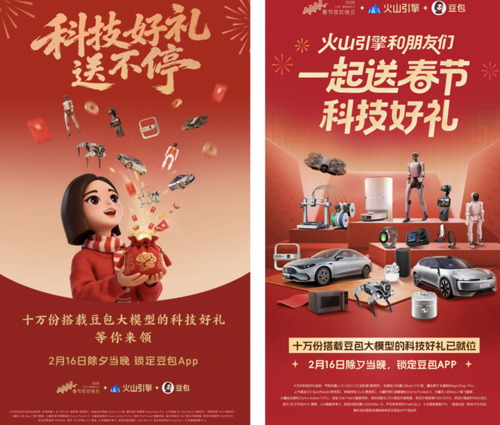 就在刚刚,「豆包过年」新春活动官宣开启:央视总台春晚上,字节旗下豆包和火山引擎将在豆包 APP 中为全国观众送出包含 10 万份 AI 硬件的科技大礼包,以及最高 8888 现金红包。