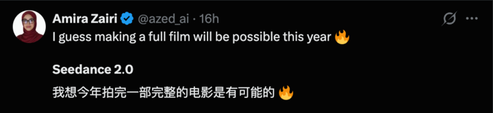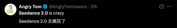 ▲在 X 上,多名 AI 视频创作者表示,Seedance 2.0 的表现相当出色