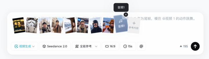 一张图,可以是用来定下画面的美术风格,也可以作为视频的关键帧;一段视频,能直接复刻角色的动作和各种复杂的运镜;几秒音频,直接带起节奏和氛围;最后再加上一句提示词,串联起我们的所有想象。