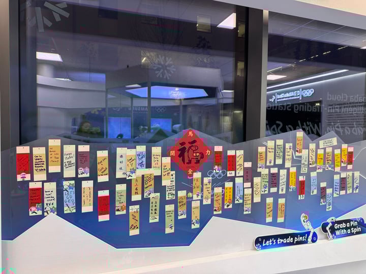 国内每逢春节,人人都爱贴福字、抢红包、到支付宝集福卡,花式为自己新年攒一点「好运气」。祈福求运的动作,在万里之外的米兰冬奥村产生了共振——在智能徽章交换站,每个徽章球里都塞了一张双语「好运签文」:
