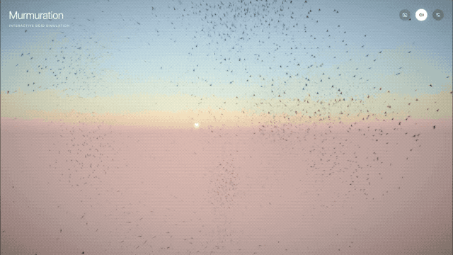 一个是 3D 椋鸟群模拟,不只是生成视觉代码,还支持用手势操控鸟群,并配有随鸟群动态变化的生成音乐;