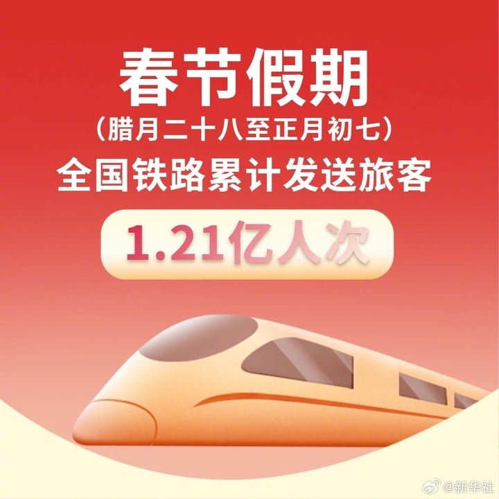 春节假期全国铁路发送旅客 1.21 亿人次,创历史新高