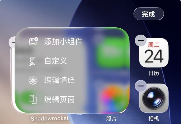 主屏幕编辑菜单的液态玻璃透明度进一步提升,玻璃质感更明显,但在部分背景下会导致文字与图标的对比度下降,导致可读性变差;深色模式下的控制中心弹窗背景也同步变得更暗。
