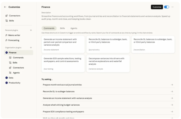 这次发布的核心逻辑,是把 Claude 变成可以深入企业不同部门的专业智能体,同时允许管理员创建私有插件市场,在组织内部统一分发和管理这些工具。