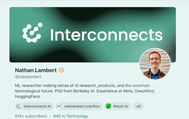 Nathan Lambert 是 Allen AI 研究所的科学家,博士毕业于加州大学伯克利分校,师从机器人领域的著名学者 Pieter Abbeel。他并非 RLHF 技术的发明者,但他写的《RLHF》这本开源书籍,如今是 AI 从业者理解大模型训练流程的标准参考材料之一。