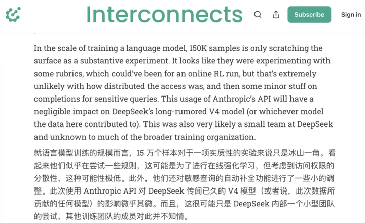 但 15 万次是个什么体量?Lambert 认为,这点数据对 DeepSeek 传闻中的 V4 模型或任何模型整体训练的影响可以忽略不计,「更像是某个小团队在内部做实验,大概率连训练负责人都不知道。」