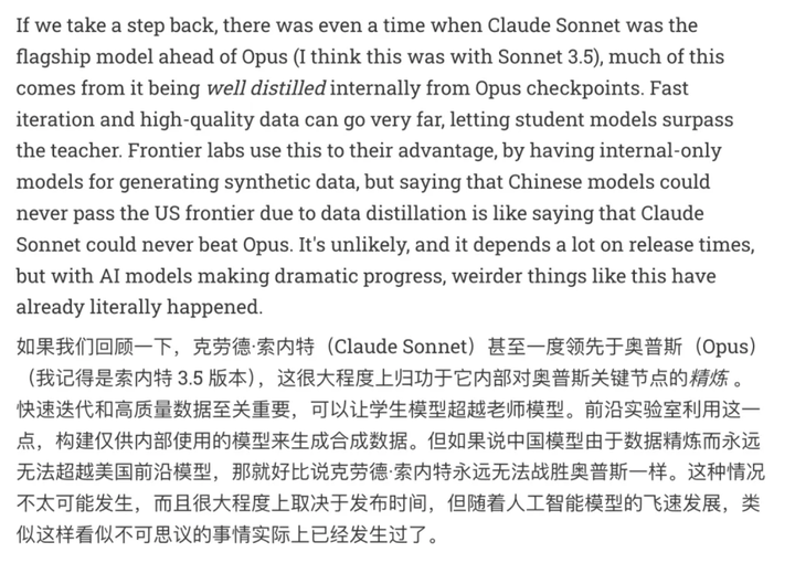 Lambert 还是给了 Anthropic 面子:「快速迭代加上高质量数据可以走很远,让学生模型超越老师也并非不可能。」