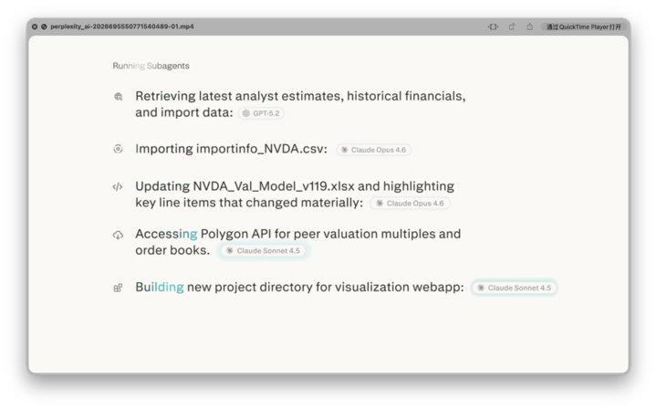据介绍,Perplexity Computer 能够将用户宏观指令(包含研究、编码、部署等项目全流程)自动拆解为子任务,并在后台同步调度多达 19 款前沿大模型协同执行。