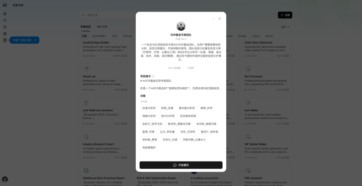 MiniMax Agent 这次推出的 Expert(专家智能体) 虽然还是在聊天对话里进行,但底层逻辑做了一些改变。它主打即开即用,提供了针对各种深度垂类场景优化的 Agent。