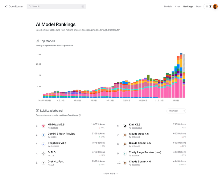 国产大模型 2 月霸榜 OpenRouter,MiniMax、Kimi 领跑全球 Token 调用量